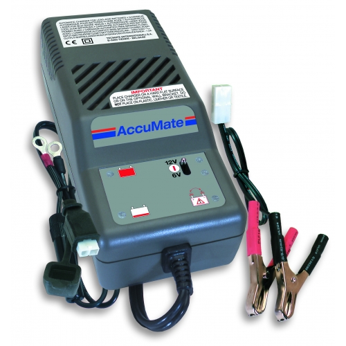 AccuMate 6-12 je dodáván s dlouhými vstupními a výstupními kablíky (dohromady 4m) a zaměnitelnými kablíky propojení, jeden se svěrkami a jeden s ochranou pojistkou a naletovanými očky pro permanentní připojení k baterii instalované ve vozidle.